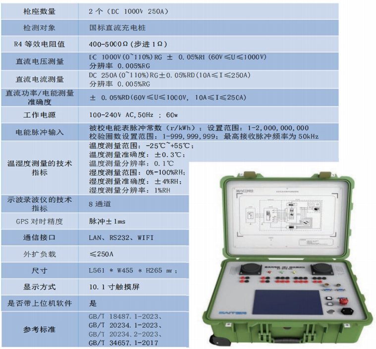 便携式直流充电桩(机)综合测试仪BC-910DC,是一款具有国标规定的互操作性规范测试、通信协议一致性测试以及计量检定测试功能的设备。专门应用于电动汽车非车载传导式充电机产品现场检测及充电桩整桩计量检定,适用于非车载充电机生产厂家研发、第三方检测机构现场验收/计量检定/安全检查,也可广泛应用于充电设施制造商等对电动汽车非车载传导式充电机,进行前期研发调试、计量检定、出厂测试,及非车载充电机购买方、第三方检测机构进行现场验收测试。