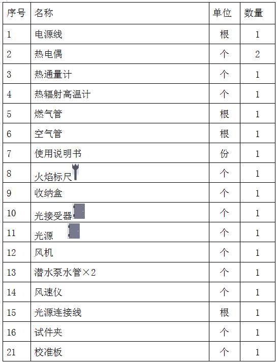 点击 启动 试验自动开始 。 点火器燃气流量(1.56±0.12)L/min调节到火焰高度为(60~120)mm,点火器会自动预热2min 然后点火器下排孔产生的火焰会在试件零点前(10±0.2)mm的地方与试件接触10min,然后自动退回并熄灭点火器火焰。 试验开始后,每隔10min(点火器退回时记录第一个10min的燃烧距离;第二个、第三个10min期间系统会有蜂鸣提示。)观测火焰前端的距离,填写在相应位置,系统会自动计算出相应的辐射通量。期间观察并在左下角选择试验过程中明显的现象。 试验应在进行 30 min后或在火焰熄灭后结束,除非委托方要求更长的试验时间。 测试某一方向和与这一方向垂直的两块试件。比较熄灭时的临界辐射通量和/或 30min的辐射通量值,在测试值最低的那个方向再重复两次试验,总共需作4次试验。 4.1试验步骤 1).打开风机、试件出入门关闭情况下箱体烟道内的气体流速满足(2.5±0.2)m/s; 2).点燃辐射板,让装置预热至少 1小时,使其达到试验所需要的箱体温度及黑体温度; 3).校准烟密度,安装好试件,关闭试件出入门; 4).点击启动并每隔10min记录火焰前端距离和熄灭距离,选择燃烧状态; 5).保存试验数据。 5.0注意事项 尊敬的用户: 您在使用仪器的过程中可能涉及以下项目请注意: 一、请务必阅读相关标准和设备使用说明书后再使用设备 二、使用规定的电压,仪器用电应有接地线。 三、试验室严禁出现试验所需以外的易燃易爆品! 四、操作人员不能离开试验现场。 五、试验室需配备灭火器材。 六、试验结束时应关闭所有电源、气源。请务必清理试验残留或滴落物! 6.0售后服务 尊敬的用户: 您好! 承蒙您惠购使用本公司产品,谨致谢意! 在以后的日子里,我们会为您提供优良的售后服务,尽力确保及时解决您的问题。 为了保护您的合法权益,免除您的后顾之忧,我公司特向您作出下述说明: 1、产品保证开箱合格,购买后一周内(凭发票日期)发现严重质量问题,经本公司技术部门或授权经销商机构确认后可提供免费更换。 2、出厂一年内实行免费保修(易损件除外),一年后,实行有偿服务,在应收费项可获优惠。 3、产品出现故障时,请将故障现象及参数详细记录,并传真(或电话)至本部服务部门,本部将在二十四小时内答复您并确认后续的服务进程。 7.0装箱清单